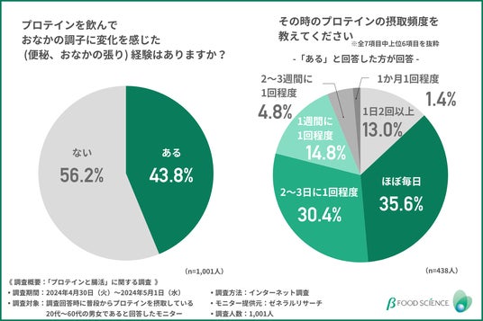 そこで今回、機能性食品素材等の製造・販売を手掛ける物産フードサイエンス株式会社(https://www.bfsci.co.jp/)は、普段からプロテインを摂取している20代~60代の男女を対象に、「プロテインと腸活」に関する調査を実施しました。