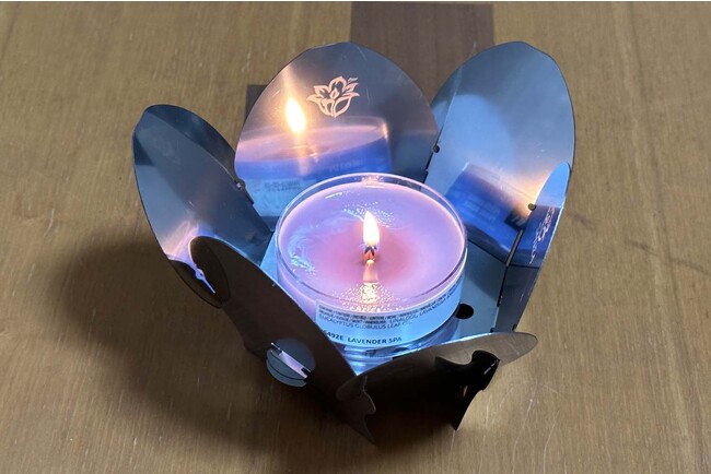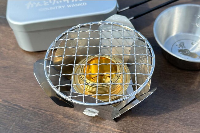 「こりんどう」は直径80mm以内のアルコールストーブが使えるように設計してあります。調理をするならアルコールストーブがお勧めです。また使用するアルコールは、燃料用アルコールではなく、少し高いですが「バイオエタノール」を使用して頂くと、炎の色が赤味を帯びますので、観賞用でも使用することができます。