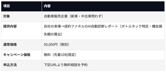 コレツカの正式ローンチを記念し、自動車販売企業を対象に無料PSLファネル診断を提供いたします。