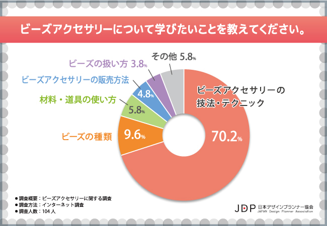 70.2%が『ビーズアクセサリーの技法・テクニック』を学びたいと回答