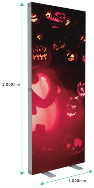 【風雅 FU-GA】は、ファブリックスクリーンによる内照式LEDスタンドの弊社オリジナルブランド名です。前述、固定サイズ仕様の「自立式スタンドタイプ」と、1mm単位のサイズ指定でオーダーできる「自立式連結タイプ」があります。「スタンドタイプ」は、ハンドキャリーできるバッグに収納できLED付き発光フレームを引き上げてスクリーン幕を取り付ければ1台約3分で設置完了です。「連結タイプ」は、展示会・イベントスペースや店舗の地型に合わせてフレームを組み立てればどんな空間も鮮やで明るい空間に仕上がります。どちらのスクリーンもインクジェット印刷仕様なので1点からオリジナルデザイン製作が可能です。