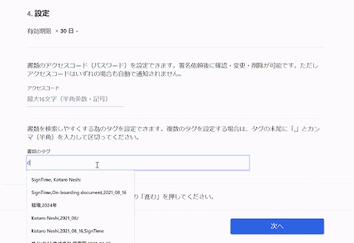 SignTimeの書類タグ機能は、アップロードした書類を分類したり、検索性を向上させる機能です。1つの書類に複数タグを設定でき、一度設定したあとも自由に変更・削除・追加が可能です。