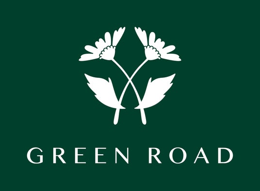 交差するふたつの花は、花や緑を媒体として、人と人、心と心をつなぐ、想いを届けるというGREEN ROADの仕事とその理念を表し、手のひらのような葉のカタチは、人の想いを、人の「手」で届けるということを表現しています。