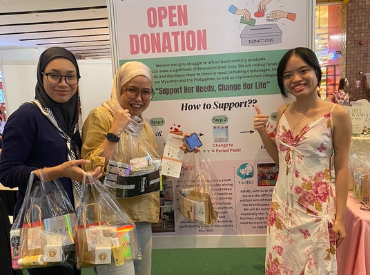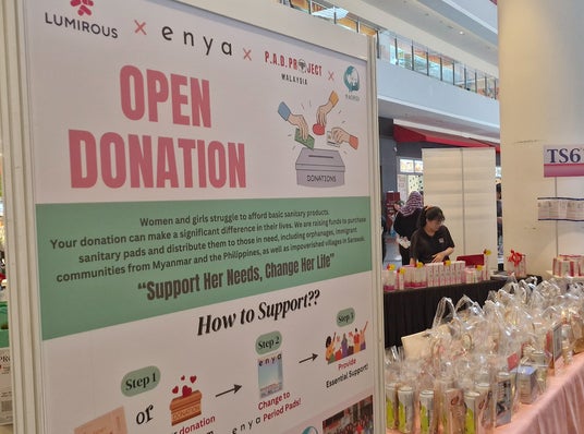 イベントではマレーシアのフェムテックブランド「enya」、NPO団体の「P.A.D. Project Malaysia」と「AOHD」とのコラボレーションによる生理ナプキン寄付プロジェクトも実施。