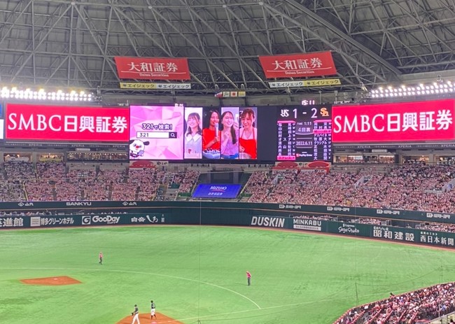 試合途中には、321所属ライバーが出演する公式CMも放映。世界最大のビジョンに321ライバーが登場しました。