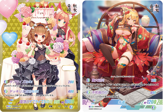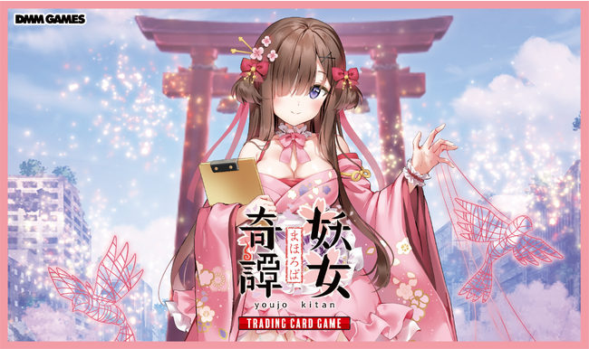 妖怪任せの放置RPG『まほろば妖女奇譚』のキャラクターたちが登場する、DMM GAMES と株式会社 TCG のタッグでお送りする新作トレーディングカードゲームです。本商品は 12 ヶ月連続でリリースされるDMM GAMES トレーディングカードコレクション(注 1)の第 9 作目として発売を予定しており、同コレクション内 12 作品であれば異なる作品(注 2)とも戦うことができる戦略性、コレクション性ともに満足いただけるトレーディングカードゲームとなっております。
