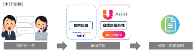 日本で多くのコンタクトセンターにシステムを導入しているNECは、顧客が抱えるこの問題を解決するために、世界 17 ヵ国 150 社以上のコンタクトセンターに通話分類・自動要約システムを導入するユニフォアのコア技術である U-Assist を活用したコンタクトセンター業務の自動化に関する実証実験を実施することとしました。