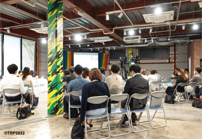 6月3日(金)には、「プライドパレード&プライドフェスティバル」での「繋がり」から見えてきた「LGBTQを取り巻く課題」に焦点を当て、TRP初の試みとなる「プライドカンファレンス」を開催しました。TRP2022 スポンサー企業の担当者(人事・広報・CSR・ダイバーシティ&インクルージョンなど)を対象に、「当事者の声を聴く」をテーマとし、LGBTQ当事者や企業のダイバーシティ施策立案担当者や、海外の状況、ジェンダーとセクシュアリティについての課題などさまざまな視点から講演を開催しました。