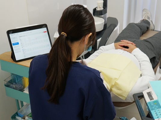 専用マイクや端末を購入する必要はなく、iPadに「PerioDx」をインストールするだけで利用可能です。費用面でも、人手不足と医業収入の低下にあえぐ日本の歯科医療業界に少しでも貢献するため、導入費0円、月額30,000円(税別)のサブスクリプションと低価格に抑えており、従来製品と比較して極めて高い費用対効果を実現しています。