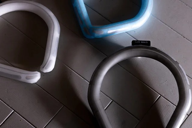 SUOリングの表面に高輝度反射材を採用した、夜間も安心なクールリング。