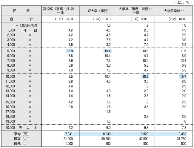 [注]高校卒・大学卒は、「一律」のほかに「基幹職・補助職」別でも調査している(以下同じ)。
