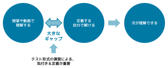 ライブ授業や映像授業で一通り理解した状態と、定着して自分で解ける状態には、見えない大きなギャップがあります。しかし、教える先生も学ぶ生徒も、なかなかこのギャップに気付けません。