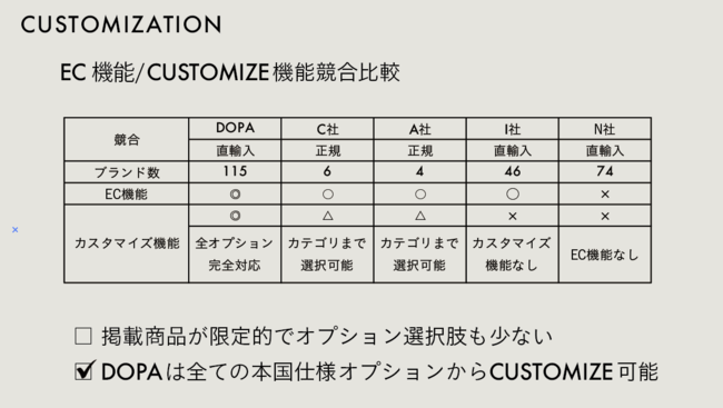 DOPAはオンラインストア上ですべての本国純正オプションからカスタマイズが可能。あなただけのオンリーワンをお選びいただけます。