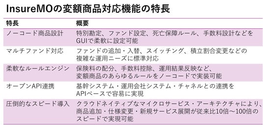 今回、複数の国内保険会社からのご要望もあり、変額保険という領域で顧客のニーズにいち早くお応えできる機能を実現しました。