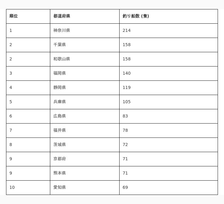 全国2500隻の釣り船検索が可能に! / 最も船が多い都道府県は神奈川県