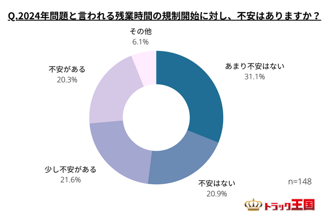 ・迫る2024年問題に対し「不安がない」が52%、「不安がある」が41.9%と、制度施行まで1年を切った現時点でもまだ4割の方が不安を抱えている