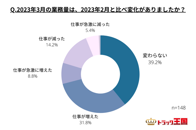 ・2月に比べ3月の業務量が増えたと回答した人が全体の39.1%
