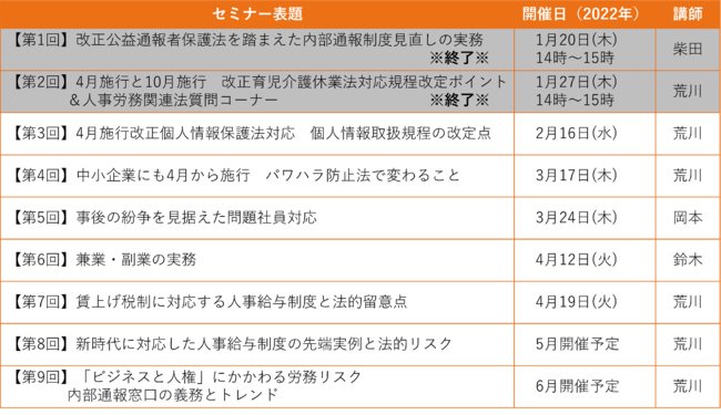 松田綜合法律事務所では、人事労務に関する連続セミナーをウェビナー形式で開催しております。