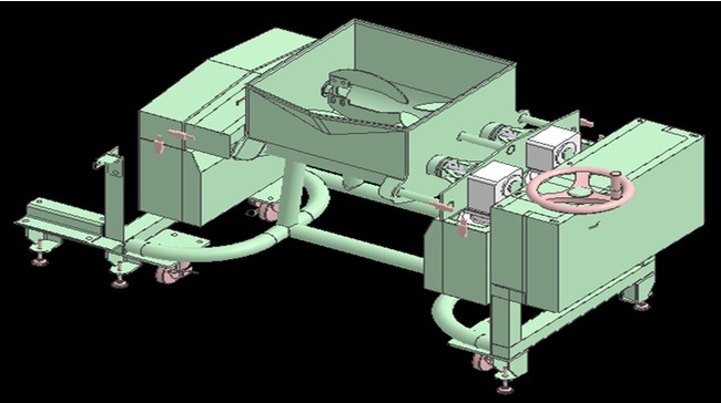 日工は2010年に羽の回転速度や回転方向を自由に設定することで、様々な形状の素材がミキシング可能で高い練り混ぜ能力を持つ「1軸フリーモードミキサ」を開発しました。開発後、粉体工業展で展示した際には、食品関係メーカーから数多くの問い合わせがあり、ミキシングテストを経て素材の形状を崩さず、高い練り混ぜ性能を発揮したものの、サニタリー性やメンテナンス性の課題がありました。
