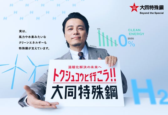 大同特殊鋼株式会社(社長:清水 哲也)は、この度、「特殊鋼と行こう!」というキャッチコピーの下で展開するCMシリーズの第6弾となる「特殊鋼と行こう! クリーンエネルギー篇」を、12月21日(日)からテレビ・デジタル等のメディアで放送いたします。今回のCMでも継続してヒップホップアーティストのKREVAさんを起用し、楽曲もご本人による書き下ろしのリリック(歌詞)とトラック(音源)になっております。