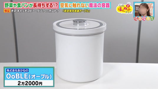 2023年12月22日(金)19時スタート。読売テレビ系情報バラエティ番組「大阪ほんわかテレビ」にて真空保存容器OoBLEが紹介されました。番組内では「真空保存で本当に魔法はおきるのか?」という疑問を、実際に商品を使って検証していただく面白い企画となっています。