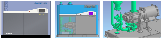 本システムで用いる中圧蒸気圧縮機は、コベルコ・コンプレッサ製「スクリュ式小型蒸気圧縮機MSRC」の採用を前提としております。