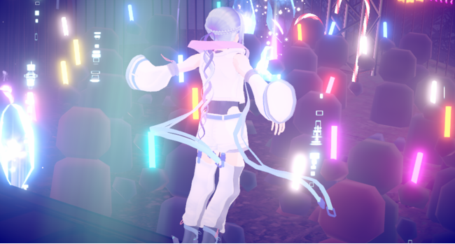 観客はメタバースライブ会場にアバター姿で入室し、サイリウムを振ったり拍手をしたり、ギフトを送ったりすることができます。サイリウムはカラーや振り方も変更できるので、実際のライブのように観客をどう盛り上げていくかがファイナリストたちの腕の見せ所となります。