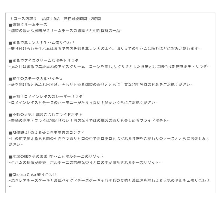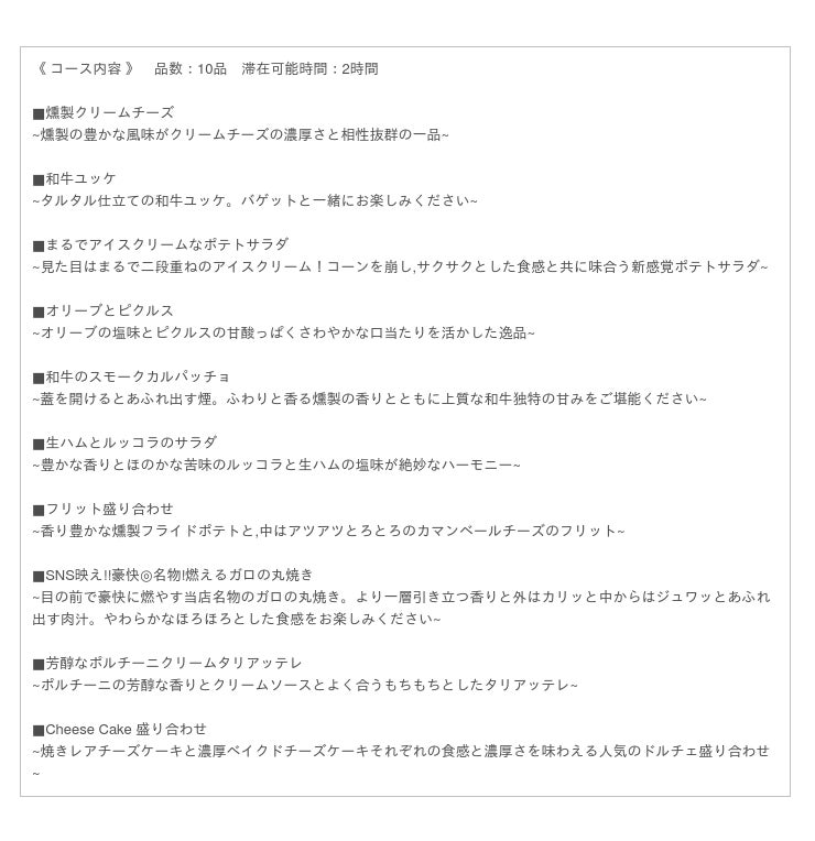 ~町田駅徒歩1分の好立地!【燻製×チーズ】の大人な味わいをコース料理でお楽しみください~