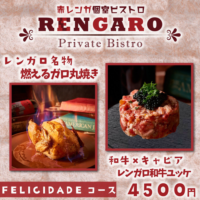FTT合同会社(本社:東京都新宿区、代表社員:曽根浩伸)が運営する【赤レンガ個室ビストロ RENGARO(レンガロ) 町田店 】は3月30日より3種類のコースの提供を開始致しました。