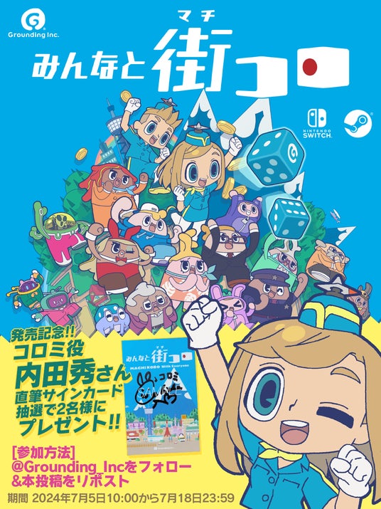 グランディング株式会社(本社:福岡市中央区 代表取締役 CEO:二木 幸生)は、『みんなと街コロ』を Nintendo Switch(TM)、 Steam にてリリースしたことをお知らせいたします。