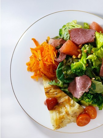 《 パストラミビーフのパワーサラダ・キャロットラペ・ジャガイモのガレット》