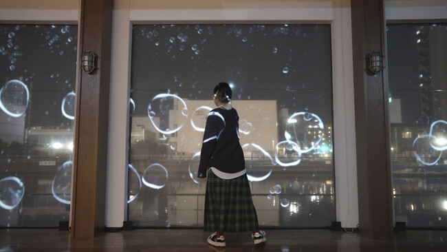 地下階の演奏会で生まれた泡が上昇することで、フロアを越えて地上階に出現。その泡に触れると、泡が弾けると共に演奏の音に変化が生まれます。