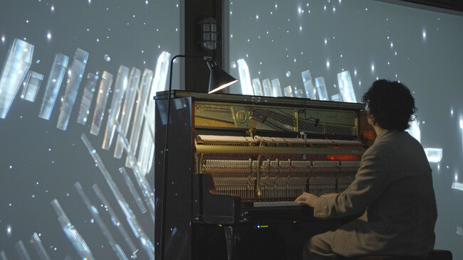 演奏会では、天王洲運河に浮かぶ会場の地下階から屋上までの3フロア構造の特性を生かし、今回のイベントのコンセプトである「unlearn(学びほぐし)」を表現。地下階では、江崎氏らのライブ演奏から壁面に泡が生まれ、地上階でその泡に観客が触れると音が変化。さらに、泡は屋上に上がり、船を動かす大きな風のプロジェクションマッピングとして映し出されます。最後には、地上階で観客が変化させた音を再び地下階でピアノに自動演奏させ、その音に合わせて江崎氏らが即興で音楽を加えていくライブパフォーマンスを披露。演奏家と観客が共に音を再構築しながら、新しい音楽として還元するインタラクティブな聴視体験は人々を魅了し、会場は拍手で包み込まれました。