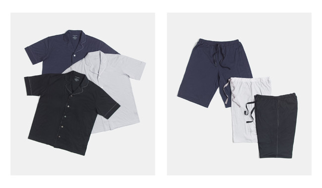 "watanomama"から新しく半袖のパジャマが登場。春夏にふさわしいトップスの半袖とハーフ丈のパンツはユニセックス のアイテムで、パイピングがデザインポイントに。 半袖パジャマ トップス 各¥19,800(税込価格) ハーフパンツ 各¥13,200(税込価格) 両アイテムともカラー:ネイビー・ライトグレー・ブラック サイズ:S・M・L(ライトグレーのみXSサイズを展開 )素材:綿100%