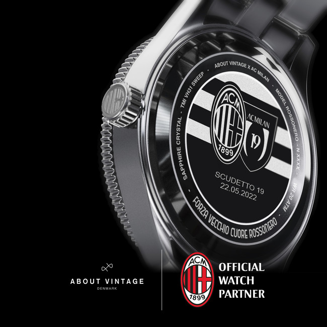 19回目のスクデット(トロフィー)の獲得と、優勝の興奮に沸くファンの方のために、About VintageはACミランの公式ウォッチパートナーとなり、優勝記念ウォッチをデザイン。最高の品質で作り上げ、ACミランへの敬意を普段のファッションにさりげなくスタイリッシュに取り入れることを実現させました。