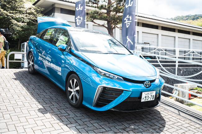 新たな持続可能なアクティビティの取り組みとして、山梨県よりお借りしたTOYOTA MIRAI(水素燃料電池車)からE-MTBに充電し、再生可能なエネルギーをもってMTBを楽しんだ。
