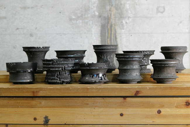 フォルムにこだわり、釉薬の組み合わせを幾度も重ねて作り出された作品は、それぞれ異なる質感、色味を持つことは勿論の事、見る角度によっても全く異なる景色を見せてくれる。
