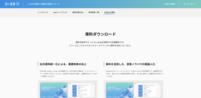 これまでの「シースラ!!」同様、資料作成代行サービスc-slideの運営が厳選した、参考になる資料を掲載しています。