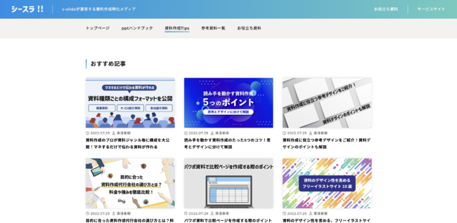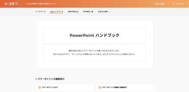 パワーポイントの使い方から資料作成・活用のコツ、参考資料一覧まで、資料作成に特化したメディアへ