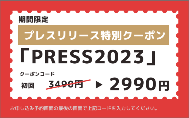 今回、プレスリリースをお読みいただいた方限定で、「プレスリリース特別クーポン」を配布中です。