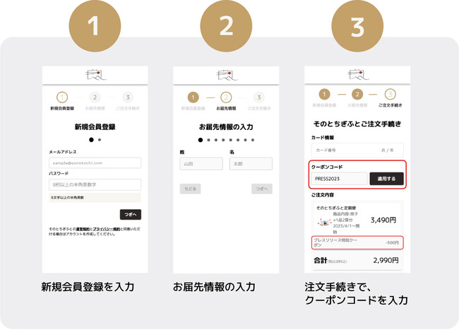 WEBサイト(https://sonotochigift.com/)から、新規会員登録をし、ご注文手続きをしていただけます。