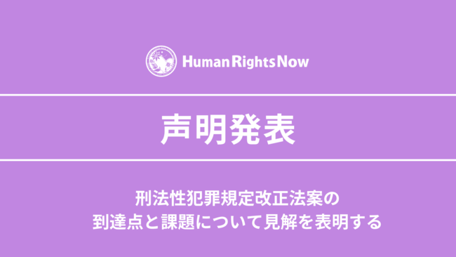 2023年3月14日、刑法性犯罪規定に関し、「刑法及び刑事訴訟法の一部を改正する法律案」(以下、改正法案)が国会に提出された。ヒューマンライツ・ナウは、他の市民団体と共に、幅広い世論の支持を得て、国際水準の性犯罪規定の導入を求めて活動を続けてきた立場から、現在の改正法案の到達点と課題について見解を表明する。