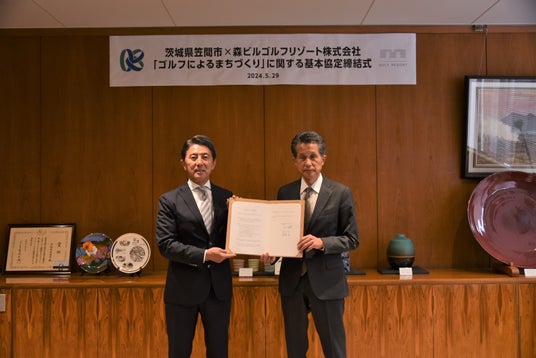 森ビルゴルフリゾート株式会社(本社:東京都港区、代表取締役社長:多田野敬)は、5月29日に茨城県笠間市(市長:山口伸樹)と「ゴルフのまち かさま」の実現に向け基本協定を締結いたしました。