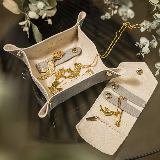 まるで鳩が体の上を羽ばたくように、何通りにもセシル・エ・ジャンヌ の「鳩」をコーディネートできるヴォヤージュ セット。シーンやお洋服によって様々なコーディネートを楽しめる、とてもお得なコラボレーション商品を、店舗やオンラインショップでぜひご覧ください。