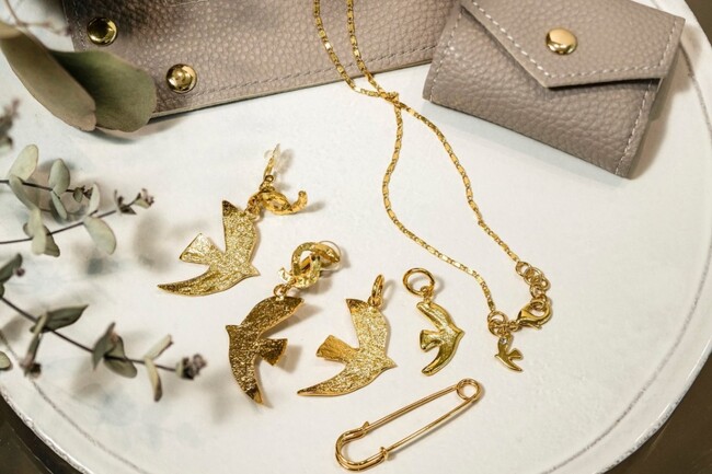 大草さんとジャンヌに共通するその想いから、ピアス、ネックレス、ブローチと自由に鳩モチーフの着けかえができ、付属のアクセサリーケースで持ち運びもできるヴォヤージュ(フランス語で「旅」)セットが生まれました。