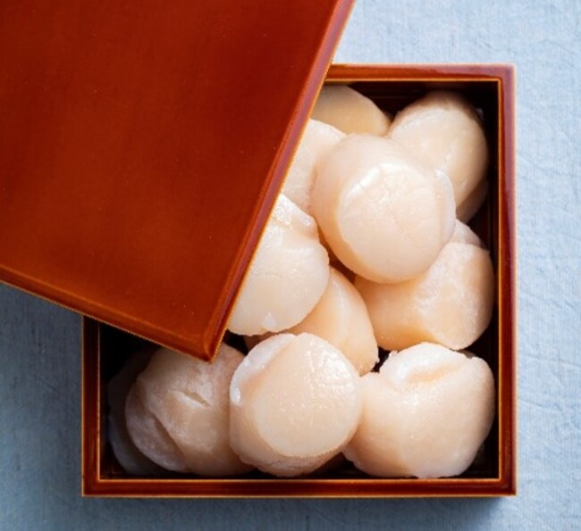 今回採用されたジャンボホタテは、北海道野付沖の厳寒の海で育った野付産のホタテで肉厚で濃厚な旨味と甘みが特徴です。一般的なスーパーで流通しているホタテのサイズは主に4S~5Sですが、一番人気のMサイズ~Lサイズの大玉をホタテです。北海道野付沖で水揚げされた新鮮なホタテをすぐに搬入し、一枚一枚を手作業で丁寧に剥き、サイズ毎に選別、マイナス40度で急速冷凍し美味しさを閉じ込めました。厳寒期に最盛期を迎える野付のホタテ漁は、日が明けない早朝から始まり、マイナス10~マイナス20度の中で水揚げが行われます。そんな極寒の海で仕事をしている漁師に感謝し、新鮮なホタテを丁寧に加工して全国に届けています。