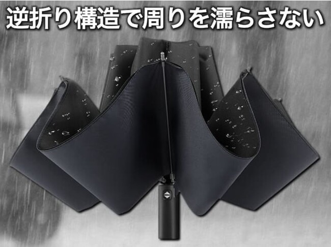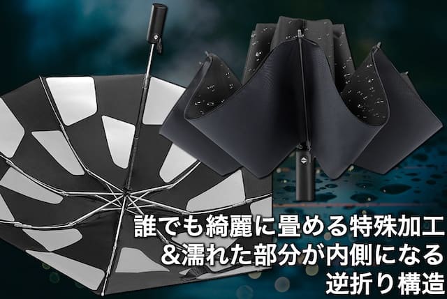 『傘の面倒ゼロに挑戦!』逆折りで収納時に手が濡れず特殊加工で綺麗にしか畳めない折りたたみ傘