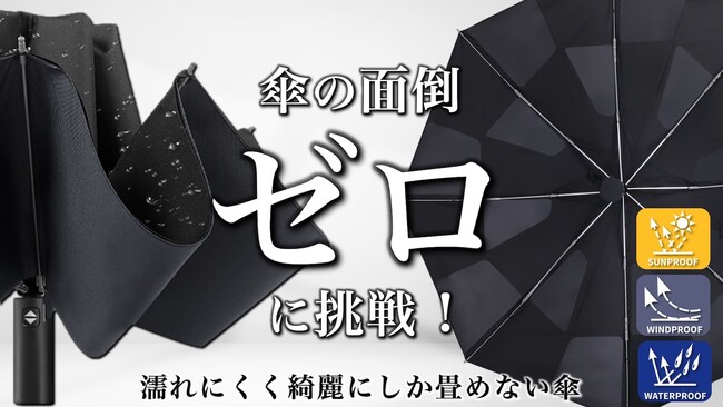 『濡れて不快』と『畳みにくくて不快』の折りたたみ傘2大不快を解消した新世代の折りたたみ傘です!