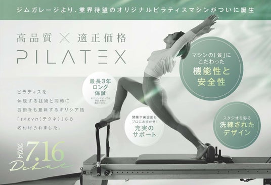 スポルテック初日となる2024年7月16日(火)、ジムガレージから「高品質×適正価格」を叶えたオリジナルピラティスマシン「PILATEX」がデビューします。