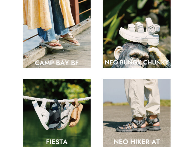 人気のスニサン(スニーカーサンダル)タイプや「シャカ」史上最高の軽量性とクッション性を誇るEXソールを搭載したモデルなどバリエーション豊かに展開。